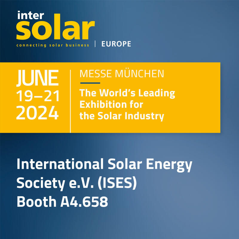 Join ISES at Intersolar Europe 2024 from 19-21 June 2024 in Munich, Germany!