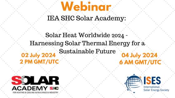 ISES and the IEA SHC Solar Academy are happy to announce that this webinar will be held twice, first on 02 July and again on 04 July 2024 at 6 AM GMT/UTC to accommodate our global audience, especially from Australia and Asia. The broadcast webinar on 04 July will then be followed by a separate live Q/A.