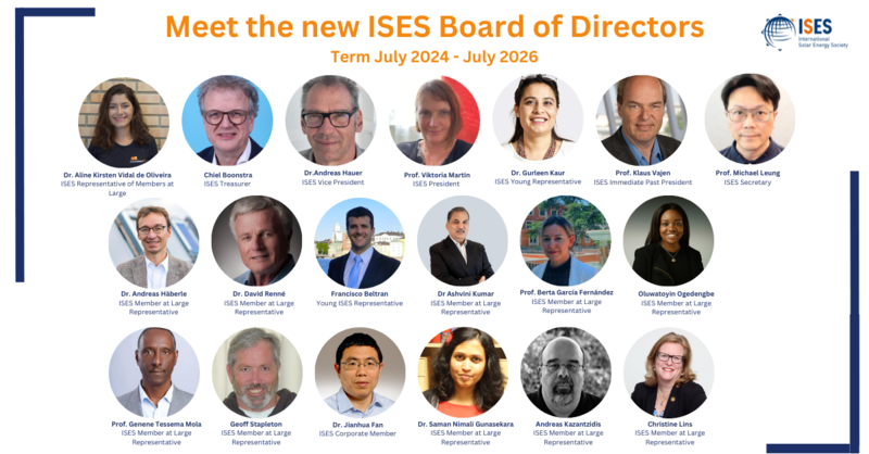 The International Solar Energy Society, ISES, announces the appointment of its newly elected Board of Directors. The new leaders of the Society are tasked with the governing of the Society and continuing the advancement of its mission towards “100% renewable energy for all used wisely and efficiently”.