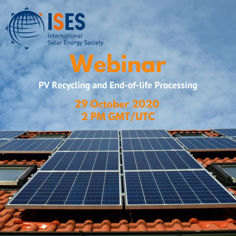 On October 29 at 2 PM GMT/UTC ISES is happy to present this webinar on PV Recycling and End-of-life Processing.