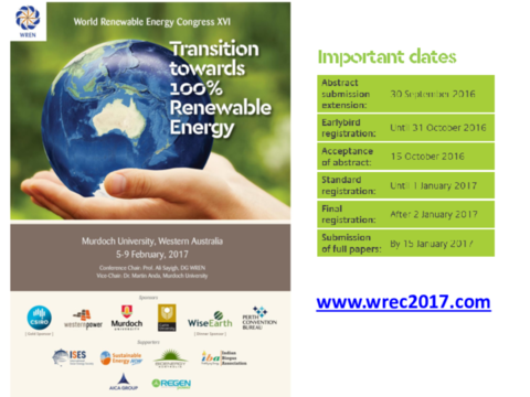 This webinar is kindly sponsored by Murdoch University, Western Australia, who are hosting the World Renewable Energy Congress (WREC) 2017, 5-9 February 2017. View the WREC 2017 conference brochure here.