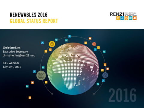 In 2015 the solar PV market saw a 25% increase over 2014 levels to reach a record 50 GW lifting the global PV total to 227 GW. Solar hot water capacity increased as well with an end of year total of 435 GWth. The webinar will begin with an overview of REN21’s newly released Renewables 2016 Global Status Report and will then look at the expanding role of solar in the power and heating and cooling sector.