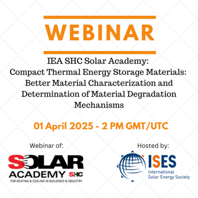 The webinar is organised by the Solar Academy of the IEA Solar Heating and Cooling Programme and hosted by ISES, the International Solar Energy Society.