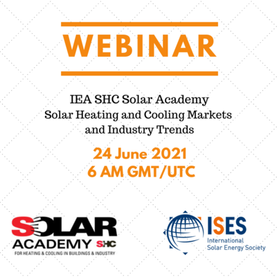 Q/A Session: The 90-minute webinar will include a 30 minutes Q/A session and a recording of the webinar will be available online afterwards. The webinar is organised by the Solar Academy of the IEA Solar Heating and Cooling Program and hosted by ISES, the International Solar Energy Society.