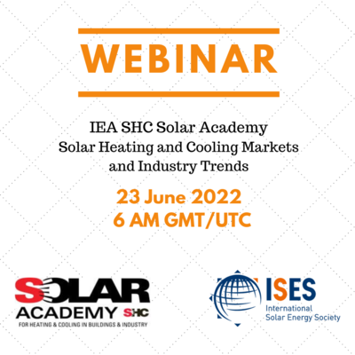 The webinar will be moderated by Pedro Dias, Secretary General of Solar Heat Europe. The webinar is organized by the Solar Academy of the IEA Solar Heating and Cooling Program and hosted by ISES, the International Solar Energy Society.