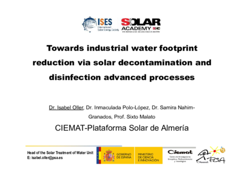 - Isabel Oller - Towards industrial water footprint reduction via solar decontamination and disinfection advanced processes