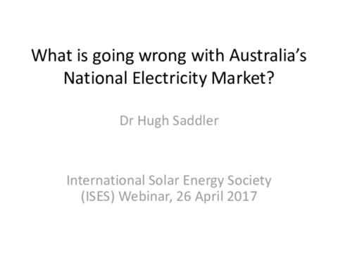 Presentation by Hugh Saddler – “Transition from a National Electricity Market perspective”
