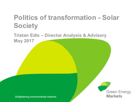 Tristan Edis is the Director Analysis and Advisory at Green Energy Markets, where he assists clients understand and make informed decisions surrounding renewable energy, energy efficiency and other carbon abatement markets.