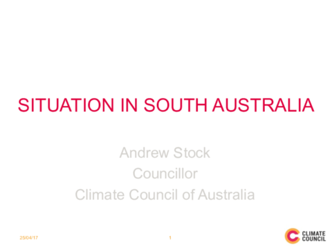 Webinar presentation by Andrew Stock – Climate Council - “Situation in South Australia”