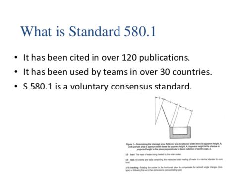 He continued work on solar cooking at the University of Arizona where his PhD research focused on identifying which parameters most impact thermal performance. In all three settings it was important to accurately quantify the influence of design changes. These experiences supported his leading the test standards committee and drafting the document that became S-580.