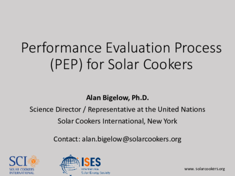 • Dr. Alan Bigelow (Science Director, Solar Cookers International) - Implementing the SCI Performance Evaluation Process (PEP)