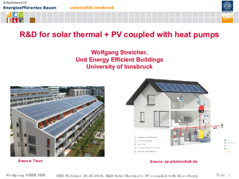 Prof. Wolfgang Streicher studied Mechanical Engineering at Graz University of Technology. He holds the char of energy efficient buildings and Renewable Energy in the Civil Engineering Faculty of the University of Innsbruck. It represents a link between classical civil engineering in the building sector and the more mechanical engineering driven HVAC (Heating Ventilation Air Conditioning) system and the use of renewable energy (solar, biomass, ambient heat) in buildings. He is working in the field of solar thermal systems since 1993. He was subtask leader in IEA SHC Task 26 for simulation IEA SHC Task 32 for phase change materials and active in the further IEA SHC Tasks 25, 38 (Solar assisted cooling) and 42 (new storage technologies). He was and is involved in several other national and international projects dealing with low energy buildings, HVAC systems, biomass burners, active and passive solar thermal energy use, and lighting and energy scenarios and in the introduction of the EPBD in Austria.