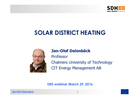 Prof. Jan Olof-Dalenbäck is professor in Buildings Services Engineering, Dept. Civil and Environmental Engineering, Chalmers University of Technology, Gothenburg, Sweden. Jan-Olof Dalenbäcks R&D focus is on reduced use of energy in buildings and other spaces that have demands on a certain climate and/or activity. His special topics are solar energy applications and energy efficiency. He is profile leader in Energy Area of Advance och participates as expert and advisor in different national and international, academic and industry, groupings. He got IEA SHC Solar Award 2005 and ISES Special Service Award 2009.