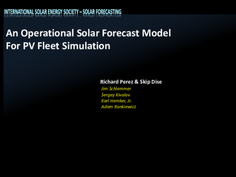 The recent Paris climate accord provides significant global motivation for the rapid deployment of large scale renewable energy programs The successful commercialization of solar PV technologies will be them a growing and major component of these programs. The Paris agreement also emphasizes the importance of innovation and knowledge sharing in achieving climate change mitigation goals. This webinar provides updated information on a very key aspect to the success of large scale solar energy deployments: the ability to forecast accurately the variable output of solar system over hours-ahead and days-ahead time horizons. Accurate solar forecasts provide essential information to utilities in managing and optimizing the contribution of these variable renewable energy systems in the grid. The webinar will provide a comprehensive overview on the status of solar energy forecasting capabilities and how these forecasts are or will be used by utility systems. Please join us for this exciting and informative 90-minute event.