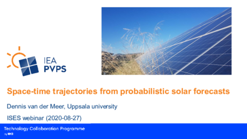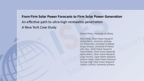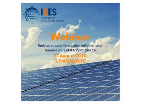 Solar Resource Assessment and Forecasting remains as a key technology to assure successful solar energy system design and operation. In this webinar, we will learn about the status of the International Energy Agency’s (IEA’s) Photovoltaic Power Systems (PVPS) Task 16 titled “Solar Resource for High Penetration and Large Scale Applications”. Jan Remund, the Operating Agent for Task 16, will give a brief update on recent and upcoming Task 16 activities. Then four task participants will provide summaries of work that is being done in the area of solar forecasting. We will hear presentations from Dennis Vandermeer of Uppsala University (Sweden) on their probabilistic forecast model, Lennard Visser of Utrecht University on benchmarking day-ahead forecasts, Patrick Keelin of Clean Power Research (U.S.) on products available from their SolarAnywhere program, and Richard Perez (U.S.), who will discuss “perfect forecasting” and how to achieve solar PV dispatchability in the grid. Dave Renné, Immediate Past President of ISES, will serve as moderator of this webinar.