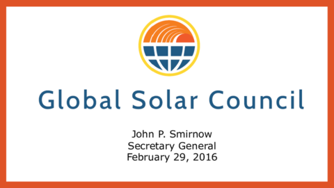 John Smirnow is Secretary General of the Global Solar Council (GSC). The GSC was established on December 6th at COP21 in Paris by the leading regional and national solar associations to unify the solar power sector at an international level, share best practices, and accelerate global market developments.